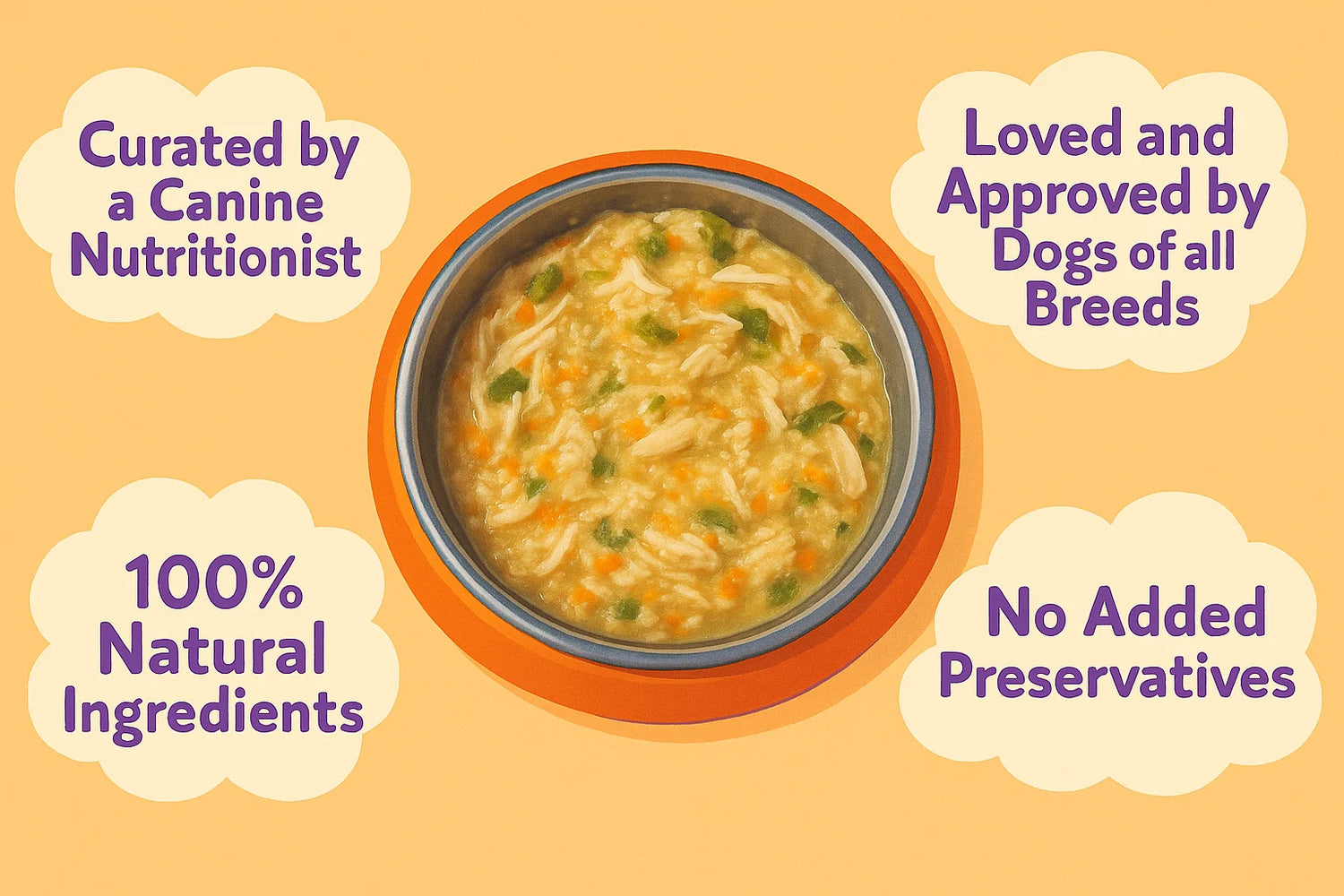 Our best-selling bowl is packed with whole foods your dog will actually love: