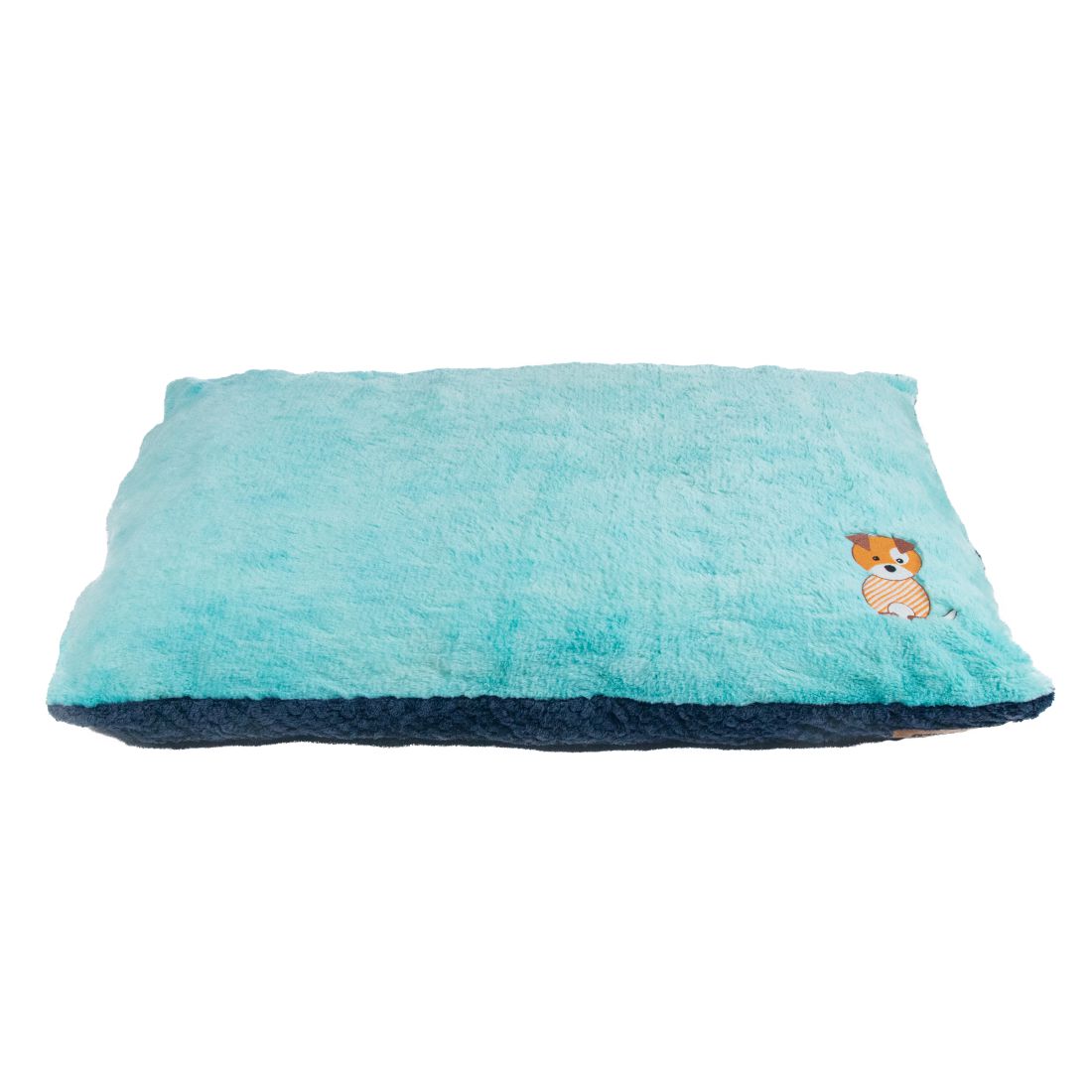 PetterWorld Reversible Chopped Foam Pillow Dog Bed with Soft Fur Cover for Calming Effect, Turquoise & Ensign Blue: