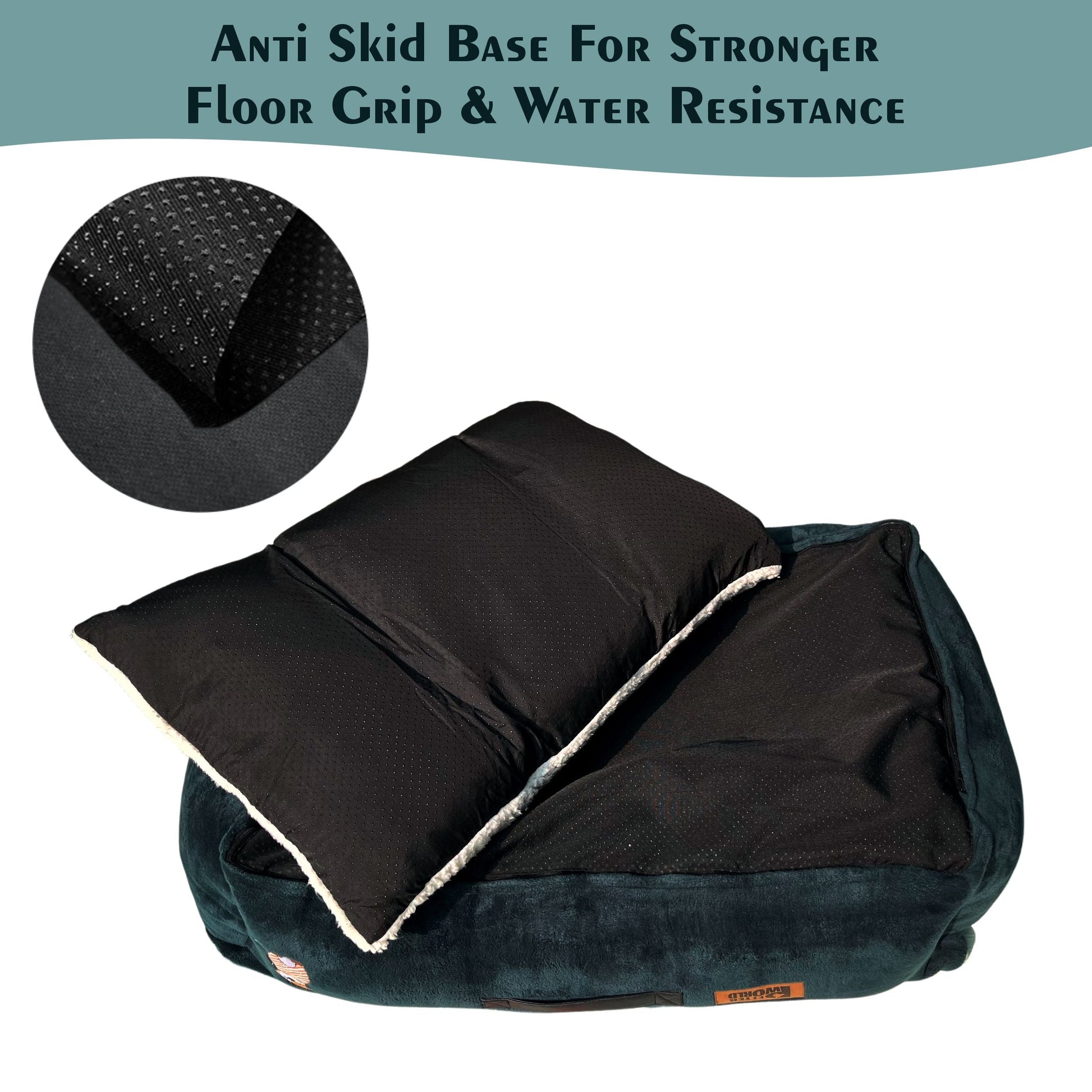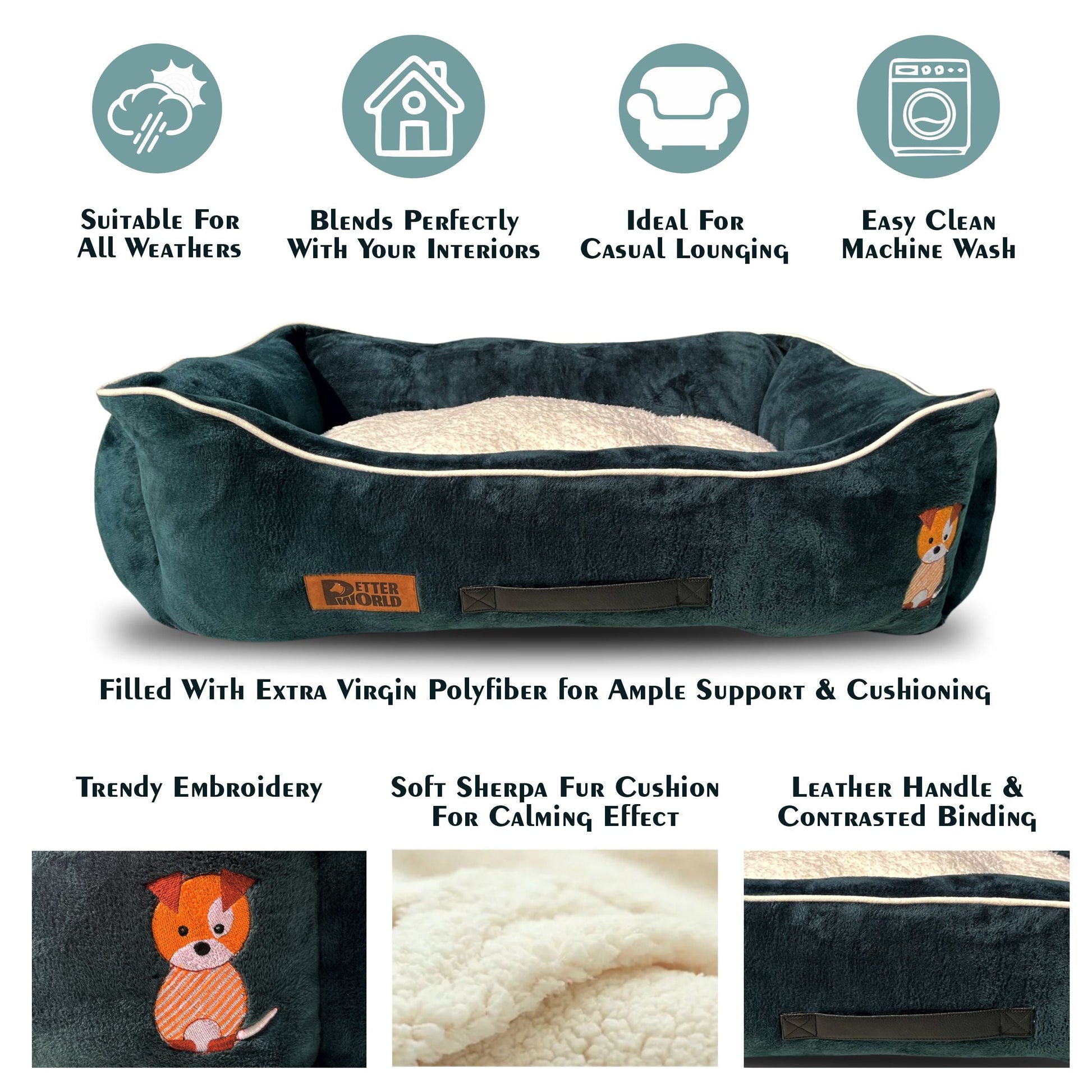 PetterWorld Ultra Luxury Soft Crystal Velvet Lounger Dog Bed with Removable Cushion for calming effect, Bottle Green: