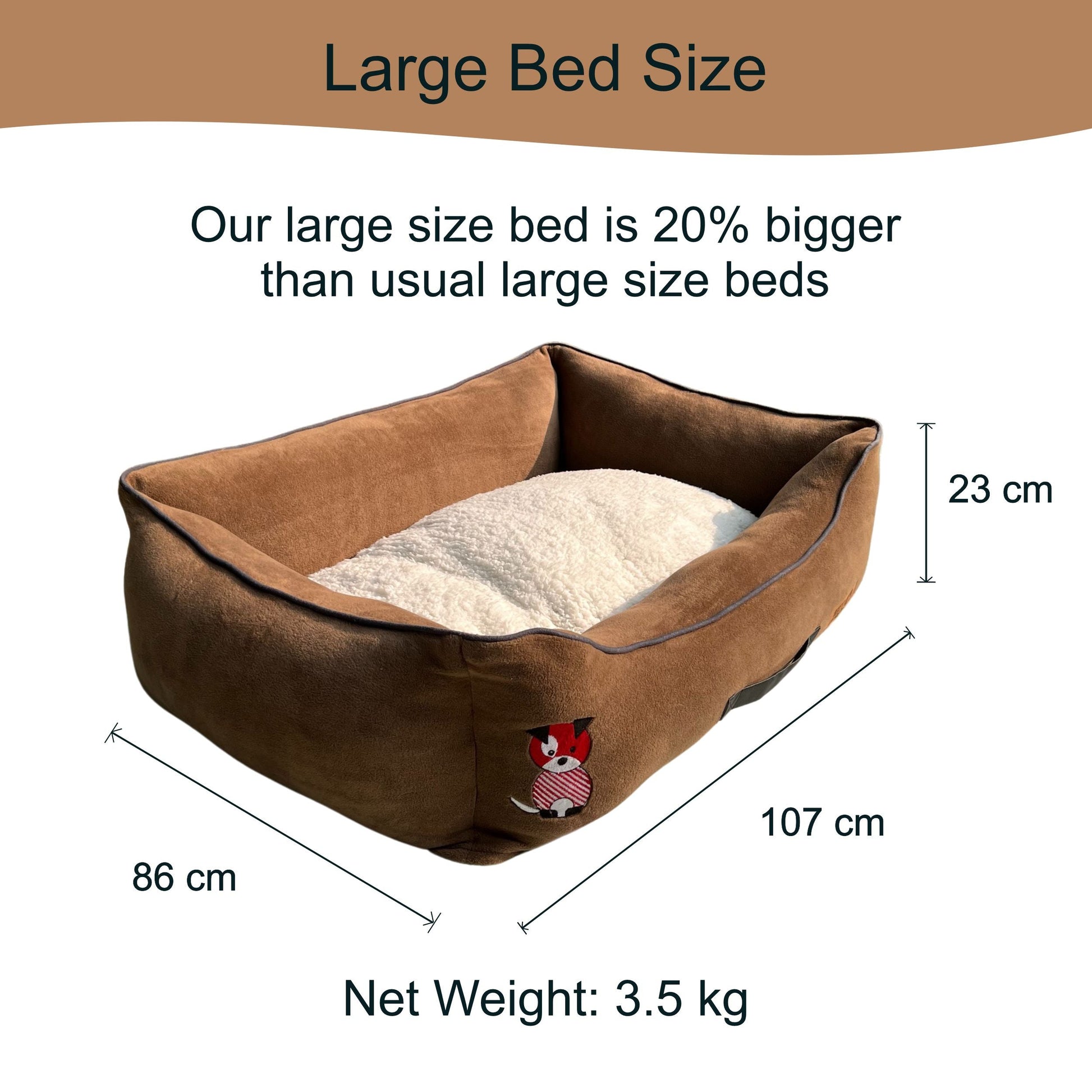 Our comfortable and stylish Lounger Beds are a classic addition to your Pet wardrobe. Made from highly durable soft crystal velvet on the sides and soft cushion on top, this bed is soft, roomy and at the same time strong & sturdy. The thick durable fabric provides ample resistance to sharp claws. It is a luxuriously comfortable bed with padded perimeter that provides support and comfort for restful sleep or lounging. It is great for pets of all ages & breeds, and comes available in multiple colors and sizes, so you can select the right bed that suits your home décor as well. Gift your pet a comfortable resting time with our Luxury Lounger Pet Bed.