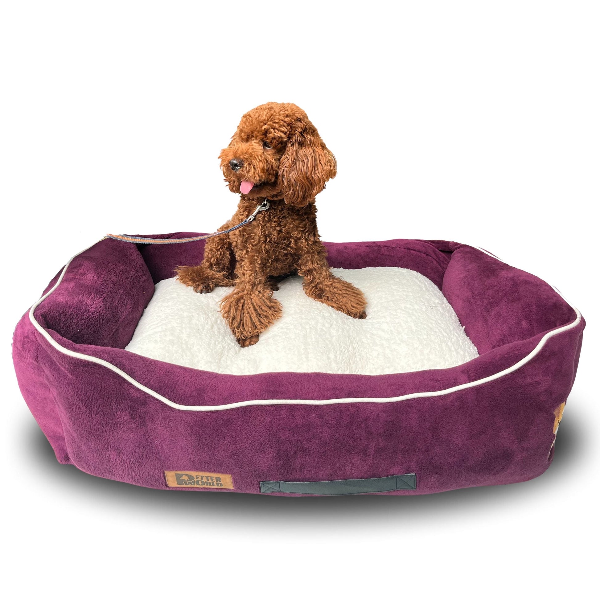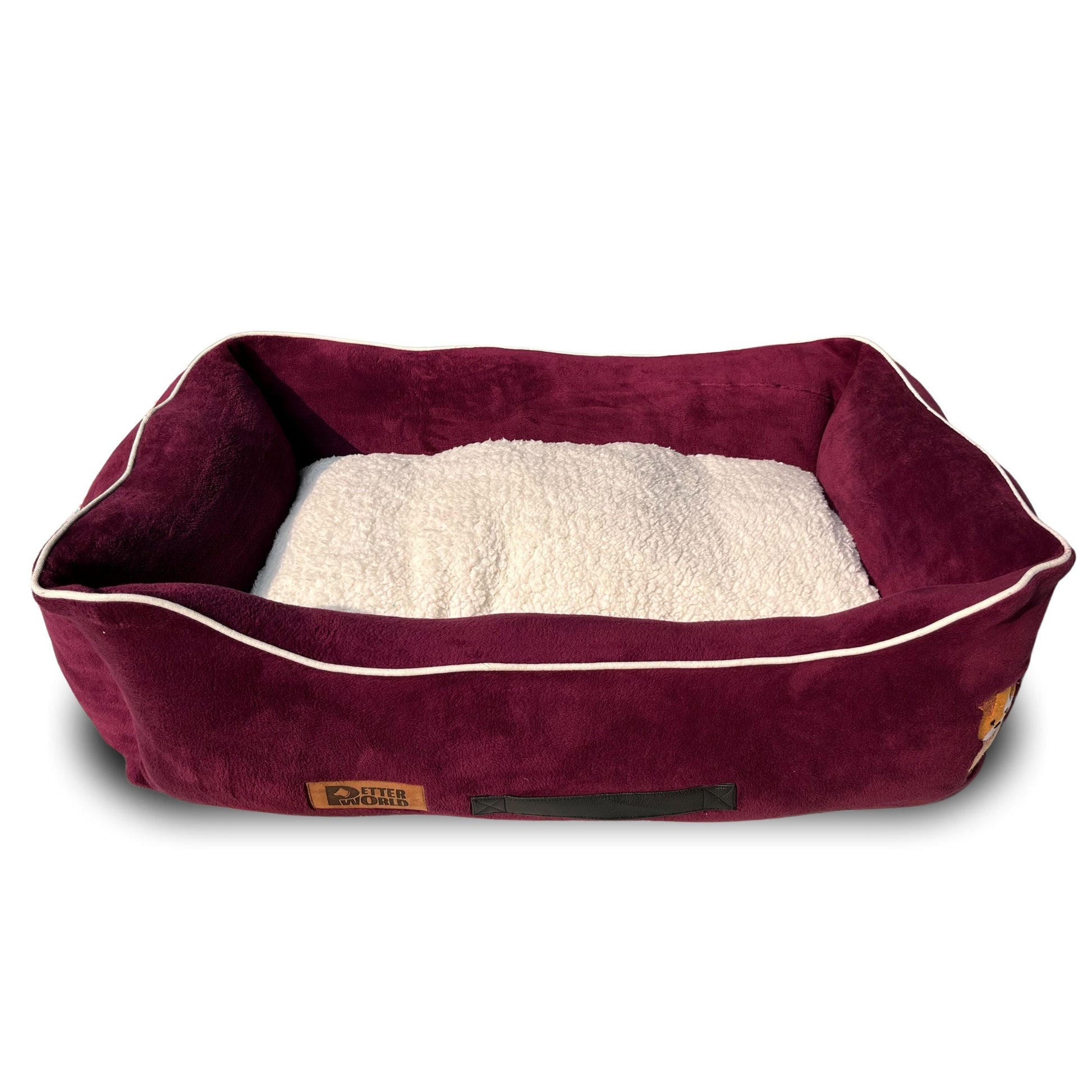 PetterWorld Ultra Luxury Soft Crystal Velvet Lounger Dog Bed with Removable Cushion for calming effect, Mulled Wine: