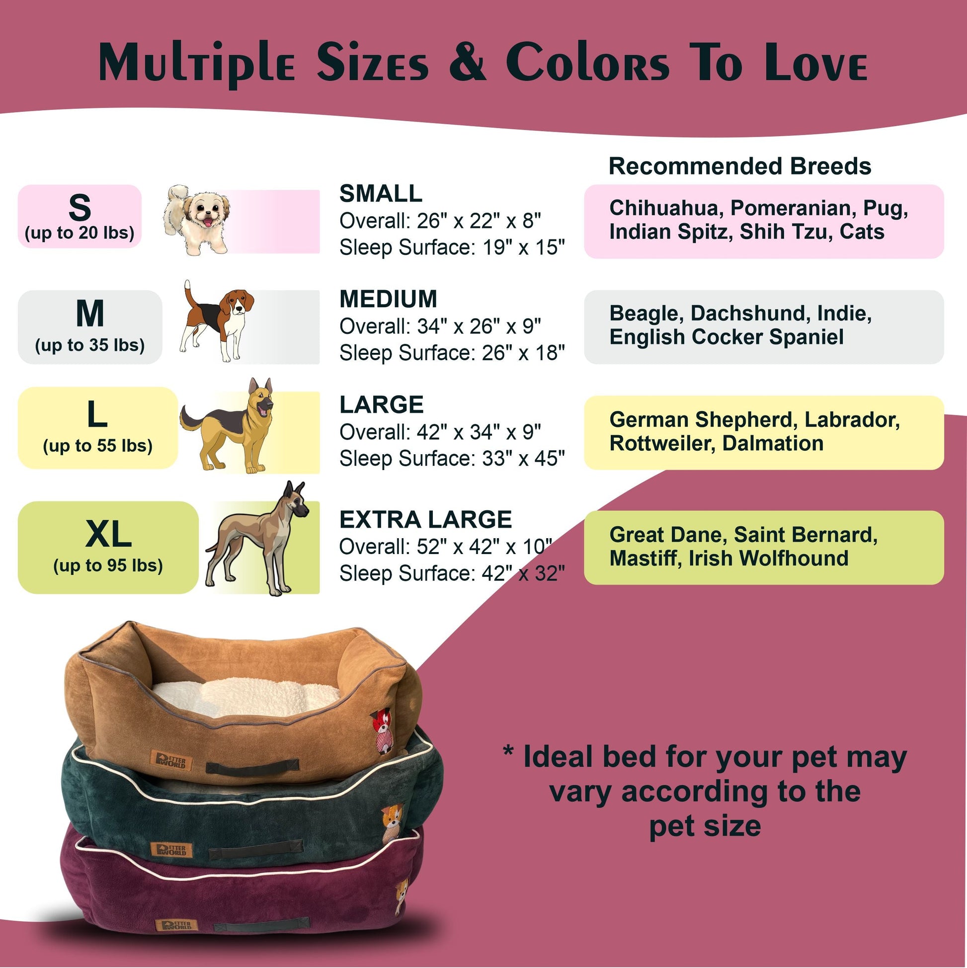 PETTER LIVING - Finally, your furry friend can stretch, curl up, and rest comfortably all on one bed; Thick, quality-assured foam & fiber inserts and soft outer fabrics make Petter World beds the only option for dog & cats of all breeds & sizes