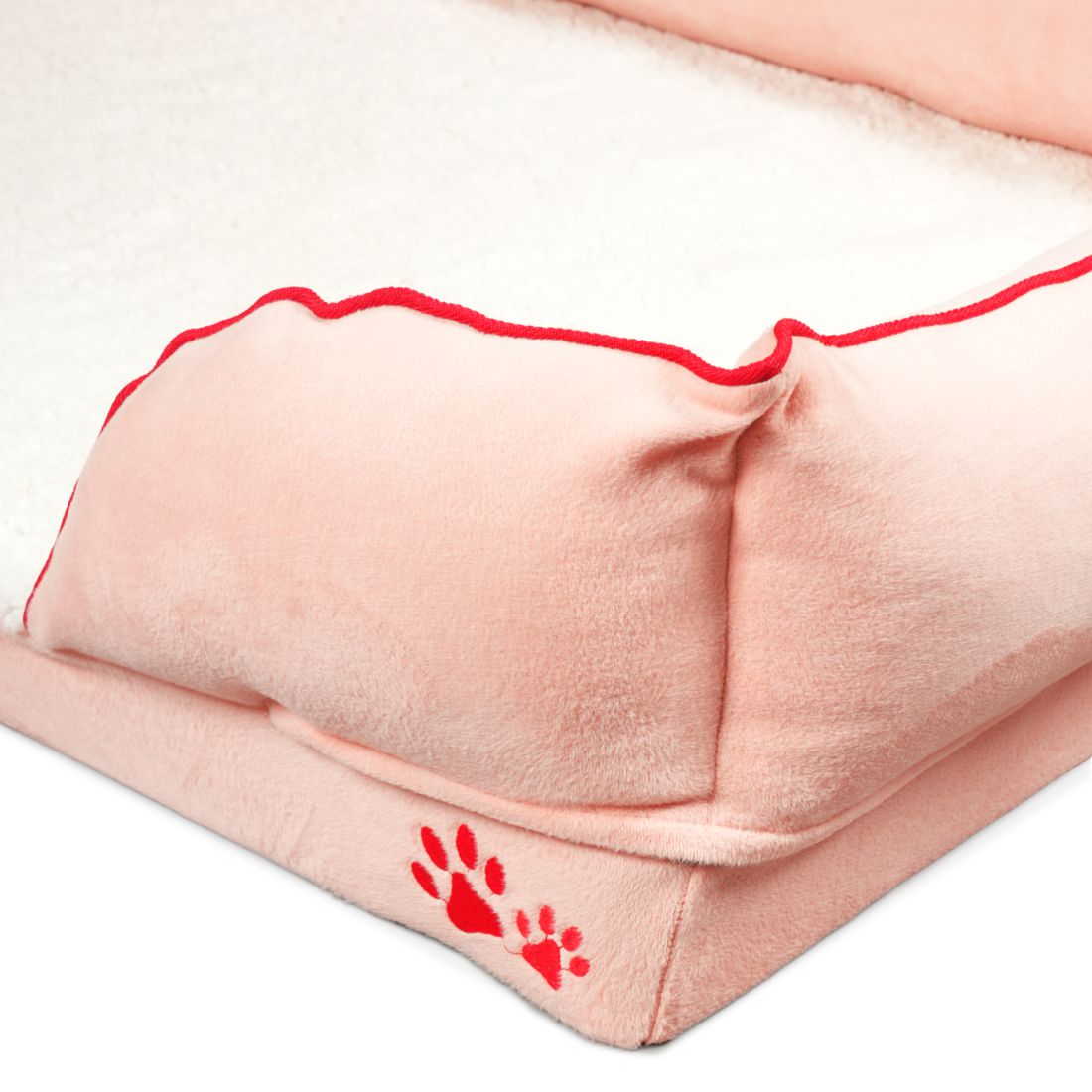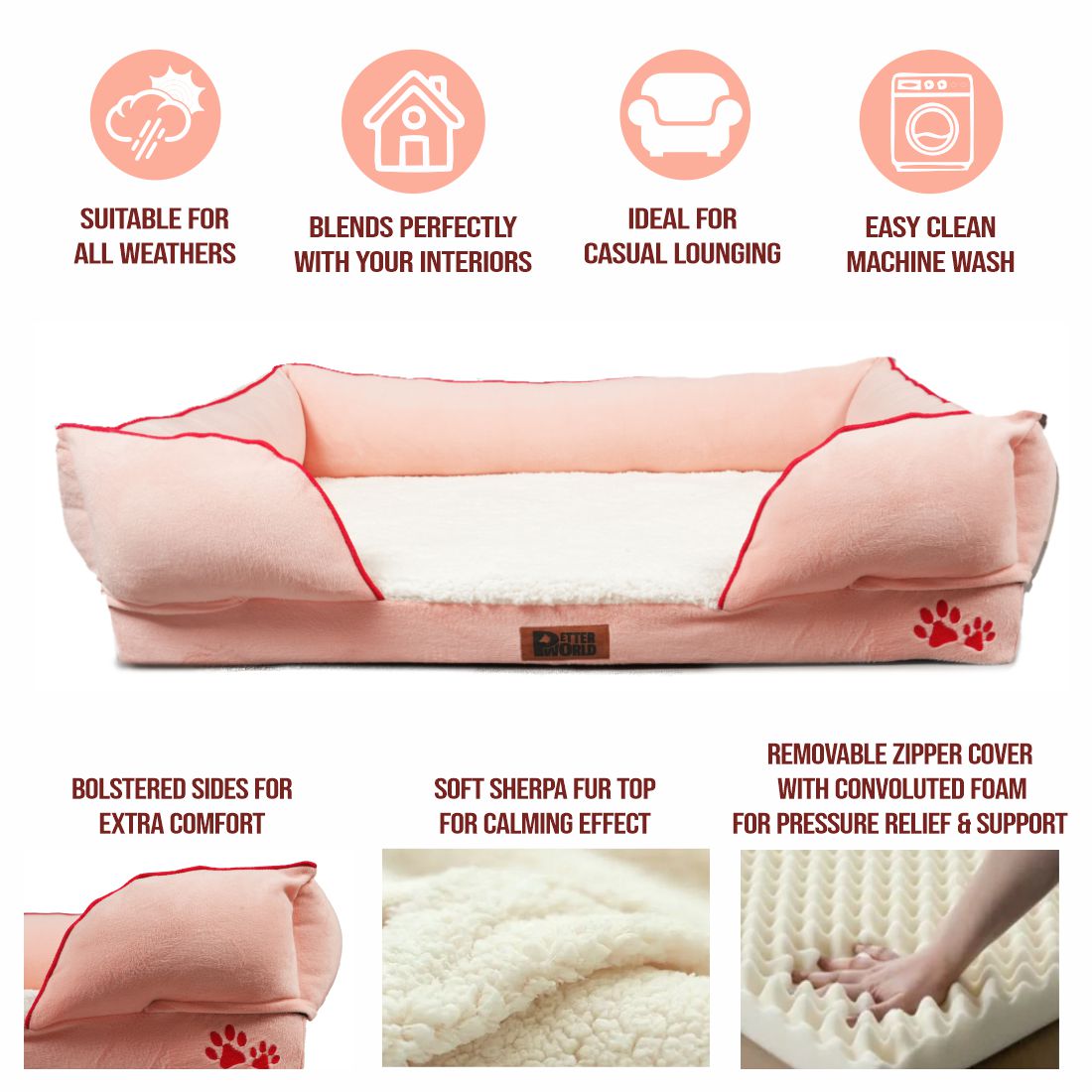 Petter World All weather Ultra Luxury Micro Fur Orthopedic Sofa Bed with Sherpa fur cushion top and convoluted foam base for pressure relief and calming effect, Peach Pearl: