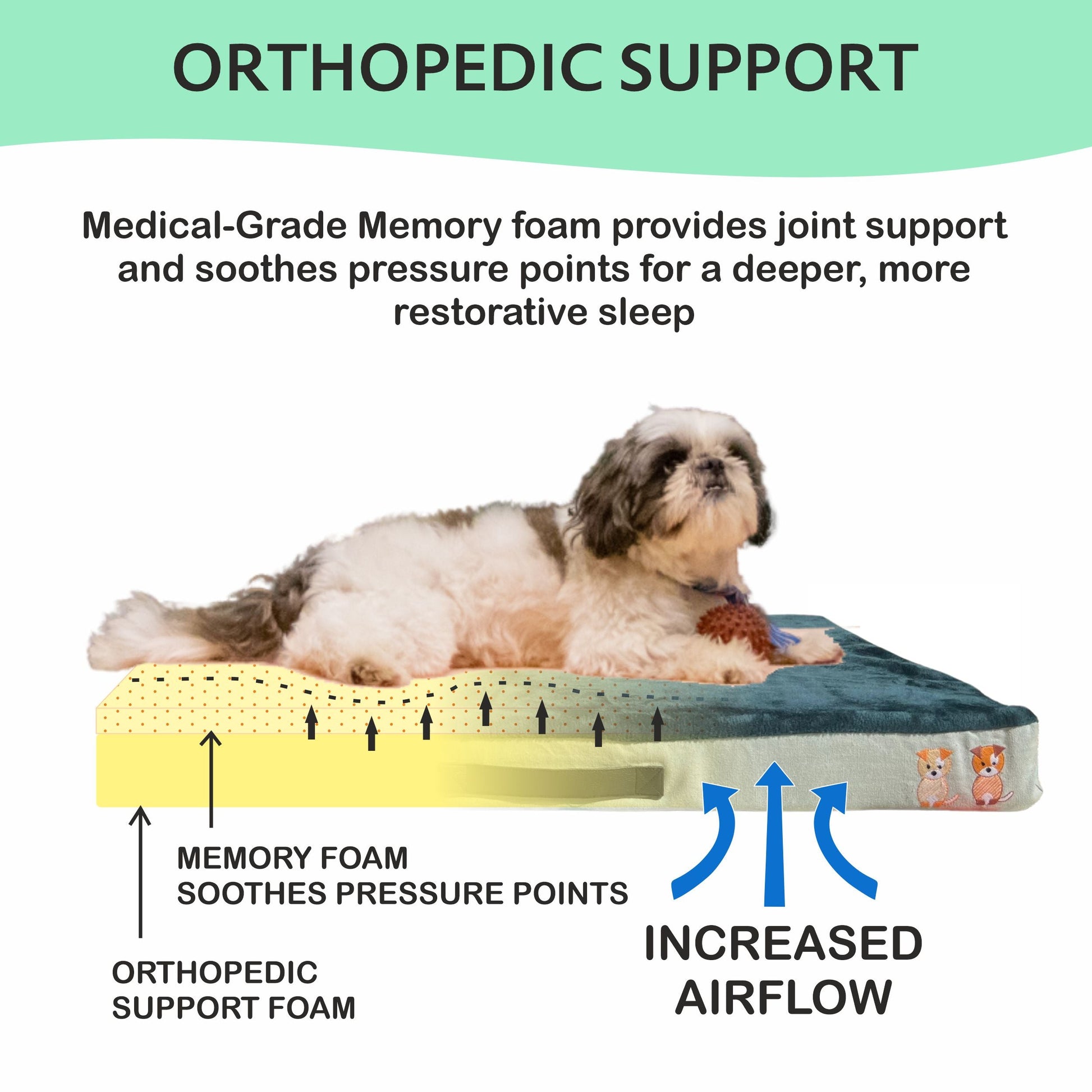 PETTER WORLD All Weather Orthopedic Mattress Bed for Dogs & Cats with Memory Foam Base for Pressure Relief and Calming Effect, Bottle Green -