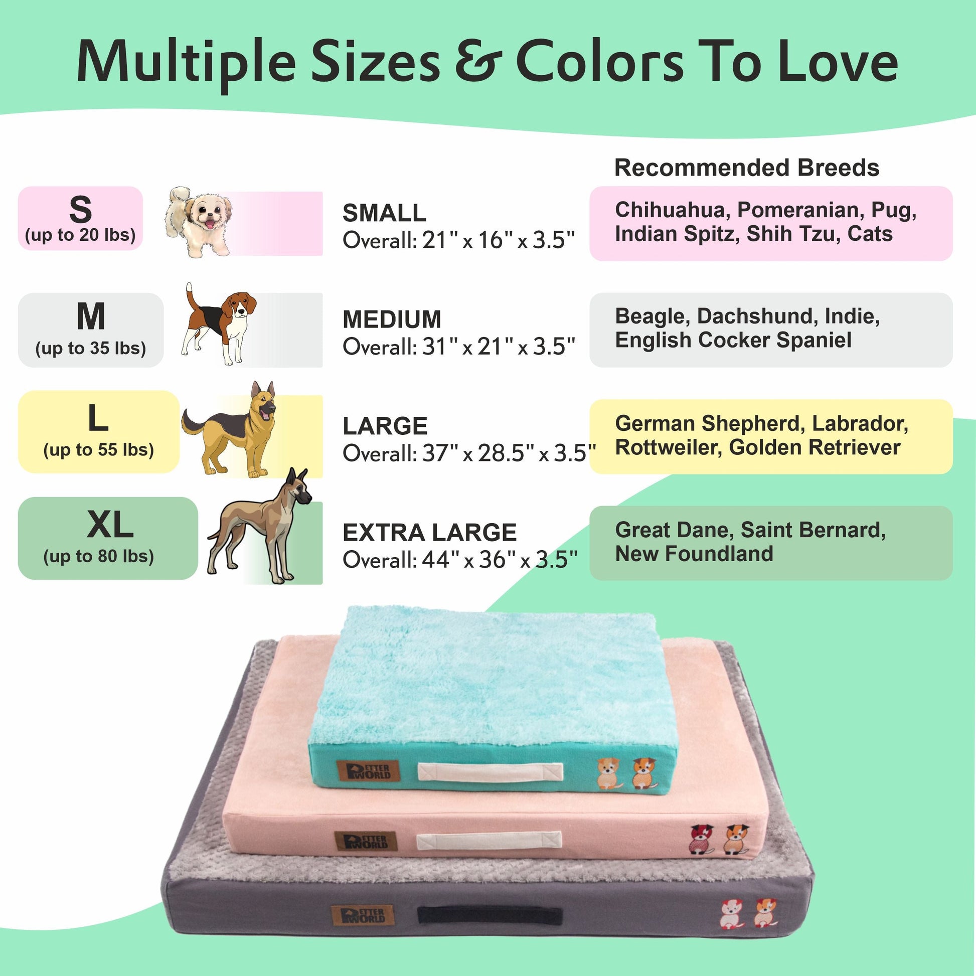 - PETTER LIVING - Finally, your furry friend can stretch, curl up, and rest comfortably all on one bed; Thick, quality-assured foam & fiber inserts and soft outer fabrics make Petter World beds the only option for dog & cats of all breeds & sizes.