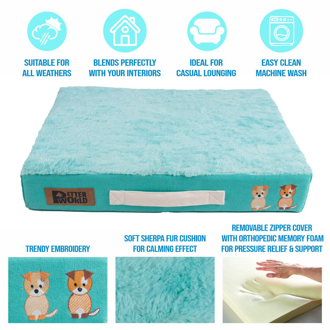 PETTER WORLD All Weather Orthopedic Mattress Bed for Dogs & Cats with Memory Foam Base for Pressure Relief and Calming Effect, Turquoise -