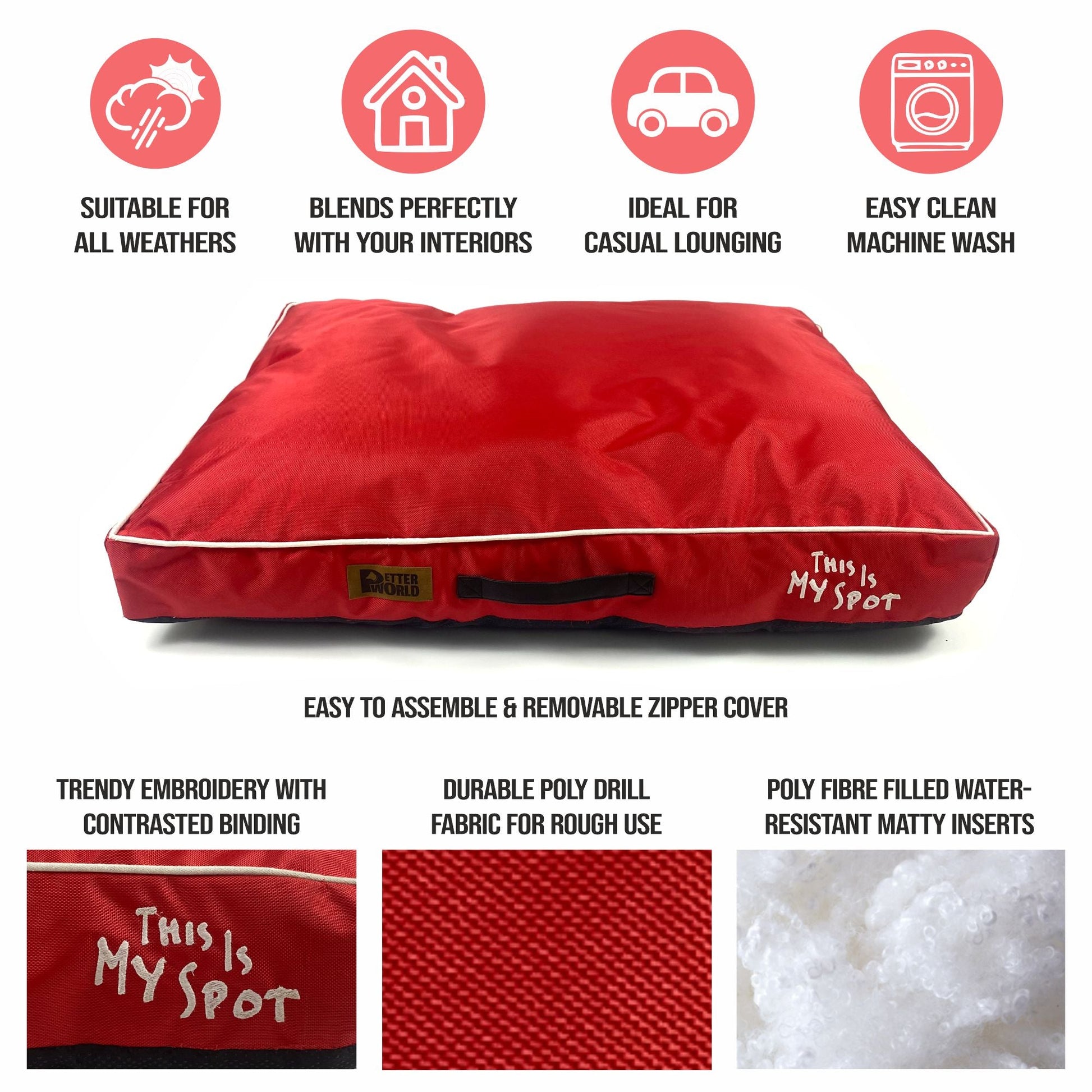 Petter World outdoor Artisanal Rectangular Cushioned Mattress Bed with Water & Dust resistant Washable Cover, Cherry Red:
