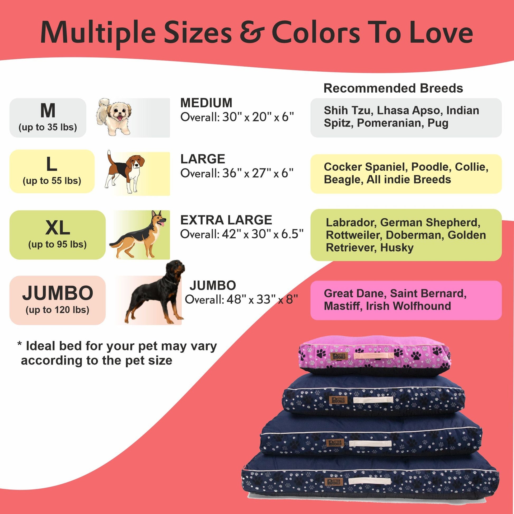 Our comfortable and stylish Rectangular Cushion Beds are a classic addition to your Pet wardrobe. Made from thick & durable outdoor fabric that is water & dust resistant. This bed is soft, roomy and at the same time strong & sturdy. High quality Virgin poly fiber filled cushion provides and necessary support and comfort, which the pet deserves. It is a luxuriously comfortable bed with embroidered perimeter that provides artisanal aesthetics. It is great for pets of all ages & breeds, and comes available in multiple colors and sizes, so you can select the right bed that suits your home décor as well. Gift your pet a comfortable resting time with our Luxury Cushioned Pet Bed.